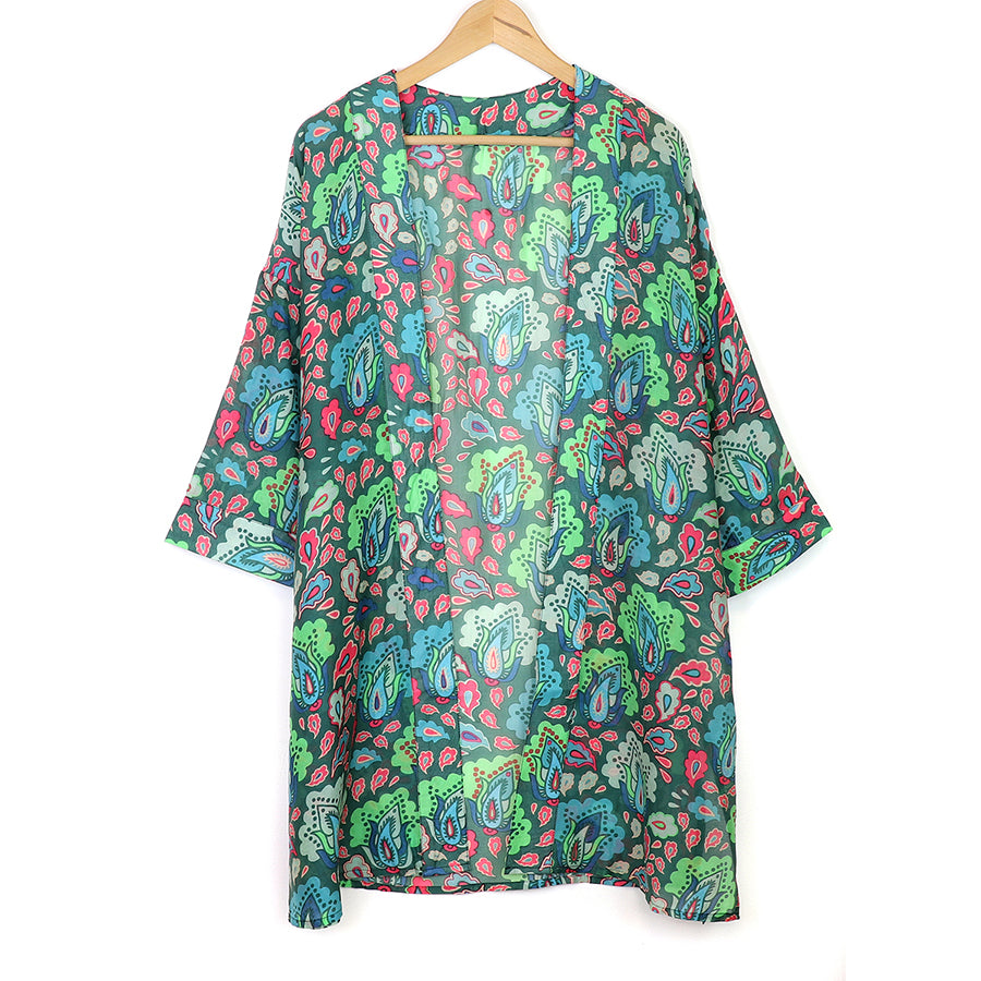 POM Long Green Mix Paisley Kimono