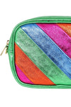 This green rainbow metallic crossbody bag is crafted from genuine Italian leather. Featuring a decorative tassel, lined interior, zip closure and classic gold hardware. This luxurious bag includes a removable adjustable strap allowing it to be worn over the shoulder or carried crossbody.