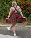 Made in a stretch twill for comfort and fit. With adjustable buckle straps so that you can choose the length. Bib style top and flared skirt.